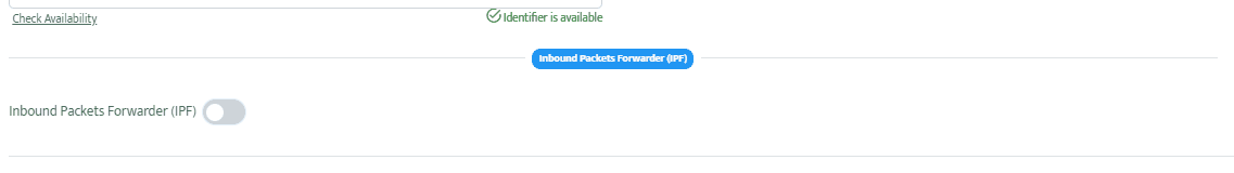 • To enable/disable Inbound Packets Forwarder (IPF), click on switch button, if enabled, in the fill Host, Port and Identifier fields if they are empty.